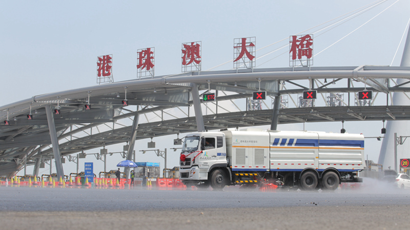 將服務于港珠澳大橋的中聯環境裝備有大型污水循環洗掃車、多功能高壓清洗車、市政管養吸污車。其中污水循環洗掃車首創了水再生利用系統,該系統過濾精度高、流量大,經回收過濾的水色度接近于純水,可以重復用于清潔路面。與不具備污水處理能力的同噸位洗掃車相比,其作業時間長2至3倍。對于東接香港特別行政區,西接珠海市和澳門特別行政區,全長55公里的世界第一橋——港珠澳大橋來說,它無需補給清水,能夠一次性完成大橋的單程清掃作業,大幅度提高了保潔效率。